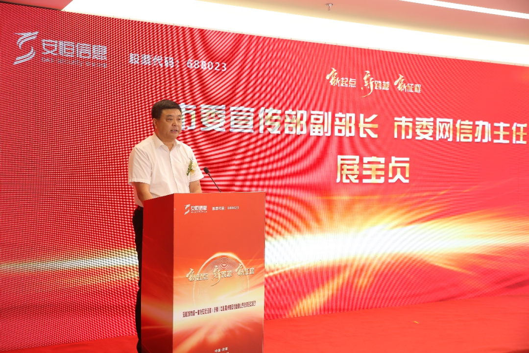 济南市委宣传部副部长、市委网信办主任展宝贞代表济南市委市政府致辞,向安恒信息长期以来对济南网络安全工作的关心支持表示感谢,同时表示济南作为山东的省会城市,三大国家战略交汇叠加,让济南进入了前所未有的机遇期、跃升期、跨越期,安恒信息是国内网络安全领域的领军企业,希望继续发挥自身技术优势、资源优势和人才优势,为我市网络安全产业持续健康发展、网络强国建设发挥重要作用。
