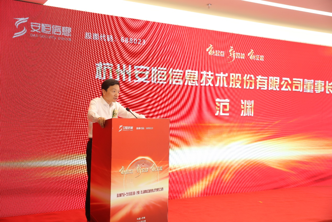 范渊董事长在致辞中表示,此次安恒城市级一体化安全运营(济南)中心揭牌和安恒信息山东总部启动,对安恒信息深化布局全国业务的战略有着重要意义,接下来安恒信息将在市区各级业务主管部门的指导和支持下,积极响应习总书记号召,发挥龙头企业牵头作用,与省会城市济南拓展合作领域、深化合作内容,为济南数字泉城建设、打造网络信息安全高地和产业创新发展贡献智慧和力量。