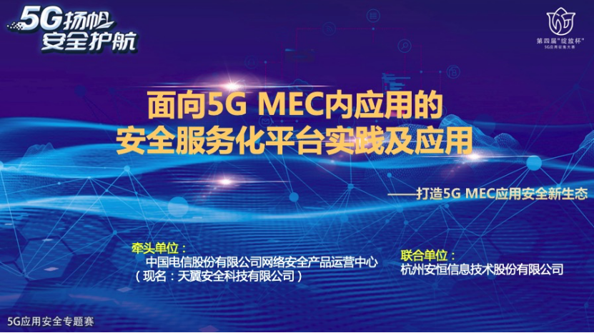 日前,由工业和信息化部组织的第四届“绽放杯”5G应用征集大赛应用安全专题赛结果出炉,经过层层筛选,天翼安全联合安恒信息共同打造《面向5G MEC内应用的安全服务化平台实践及应用》技术服务方案从323个参赛项目中脱颖而出,荣获一等奖。