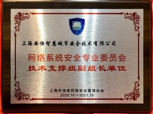 网络系统安全技术支撑组的责任是通过网络技术手段,为各类网络安全专项检查和各类大型活动的网络安全保卫工作提供有力的技术支撑。上海网安管理协会会长薛质为安恒智慧授予技术支撑组副组长单位牌匾。