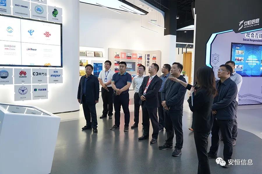 胡异冲一行首先参观了安恒信息安全创新体验中心,全面了解公司发展历程、重保事记、核心技术和公司在网络安全领域内所取得的成绩,以及安恒信息利用先进的服务平台和技术手段对全国各地重要信息系统进行安全监测和安全保障等成果展示。