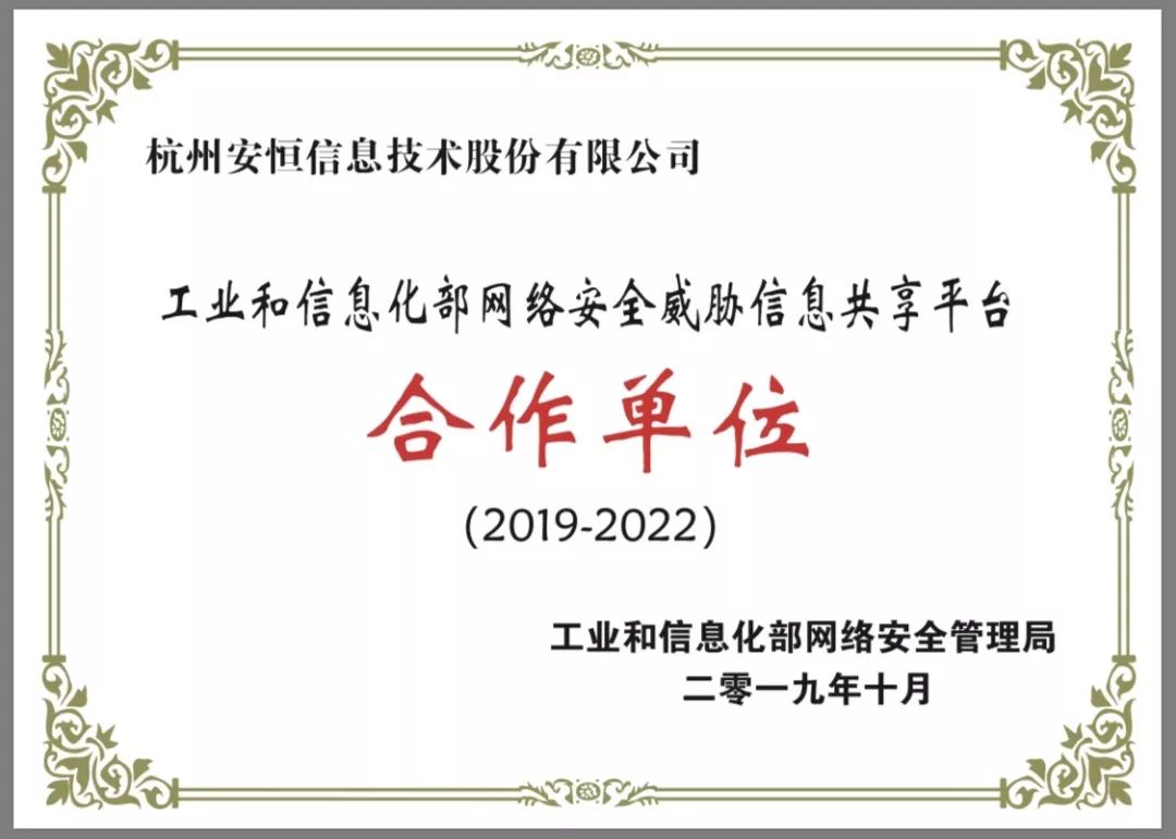 实力加持 安恒信息成为工信部“网络安全威胁信息共享平台”合作单位