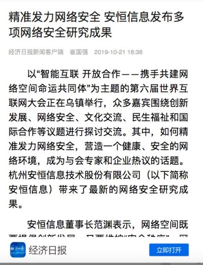 世界互联网大会 | 媒体视角下的“安恒时间”