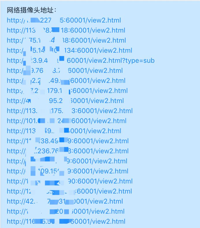 黑客公开的部分网络摄像头地址: