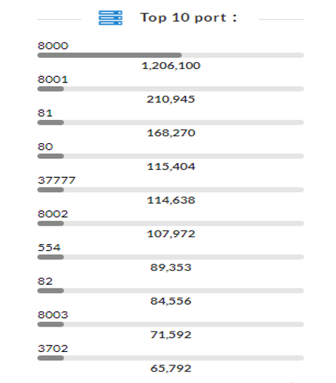 国内暴露在互联网上的摄像头开放端口最多的是8000,其次是8001、81、80、37777、8002、554、82、8003、3702。